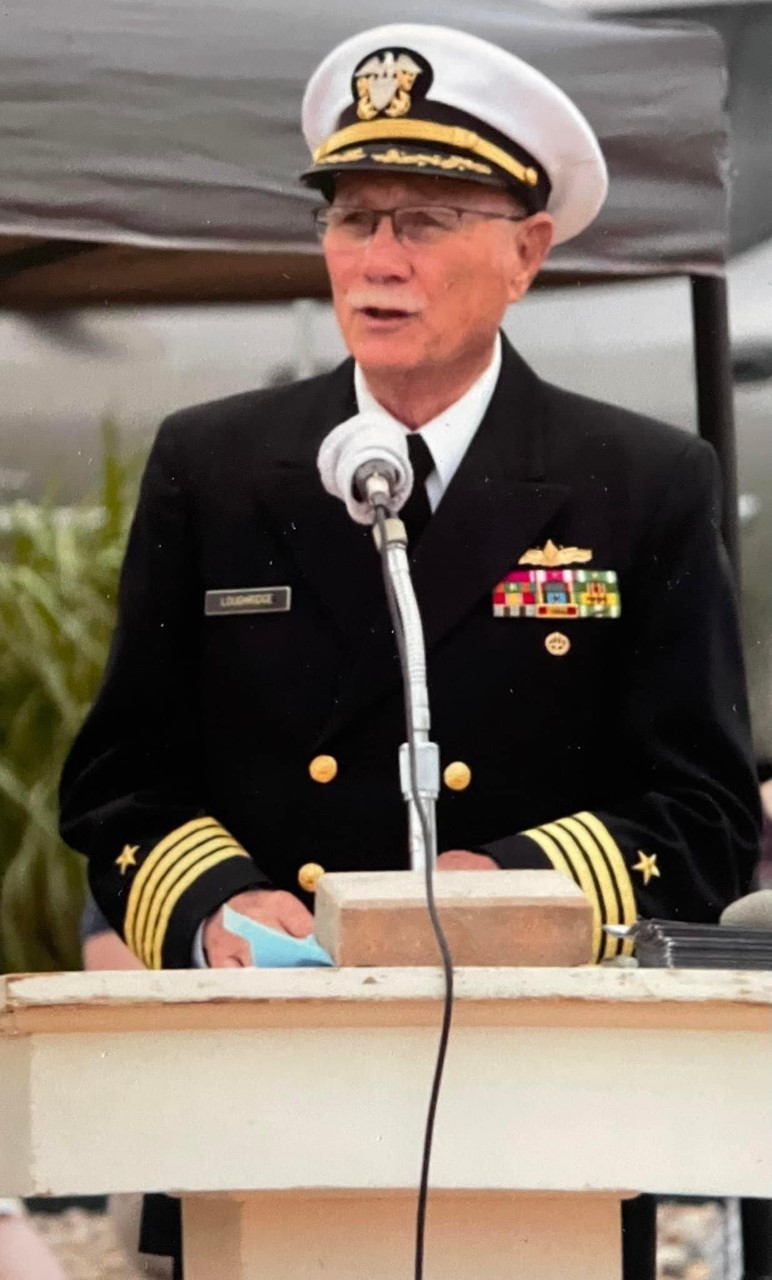 Bottom picture. At the podium May 2017, Mr Loughridge was Keynote speaker at the annual Memorial week end ceremony.